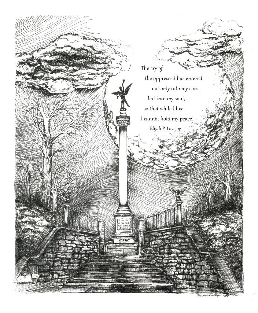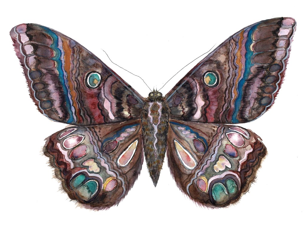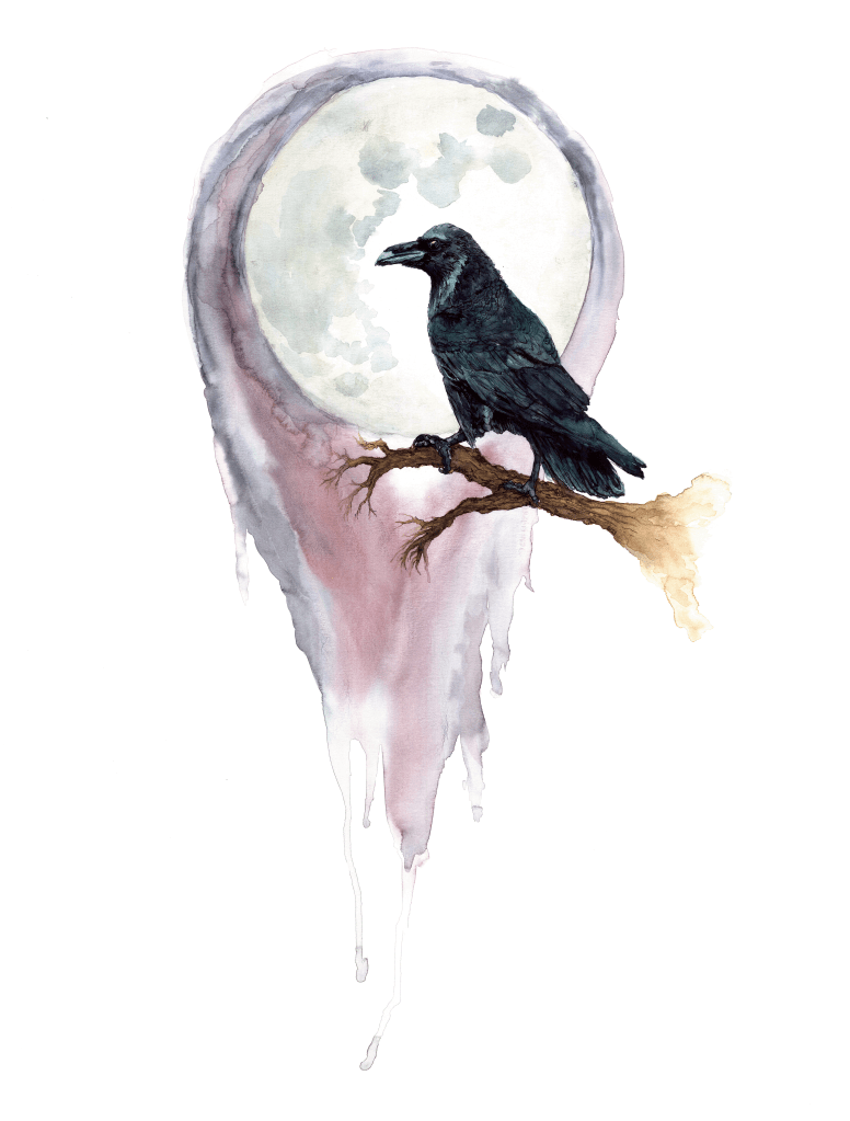 The Lovejoy Monument 2024 Ink on bristolPiasa Bird 2023 Watercolor and ink on watercolor paperCrow & Moon2023 18 x 24 Ink and Watercolor on 140# watercolor paperLuna Moth 2023 Ink & Marker on bristolSamhain Blessings 2020 Ink & Marker on bristol